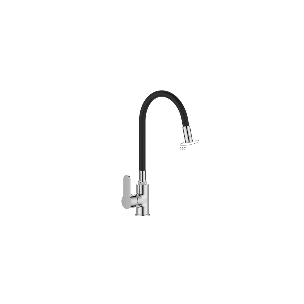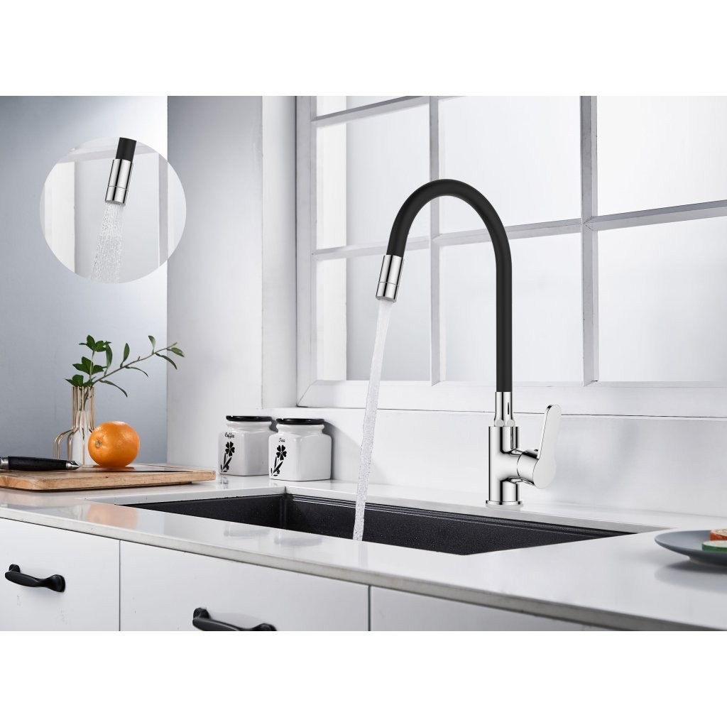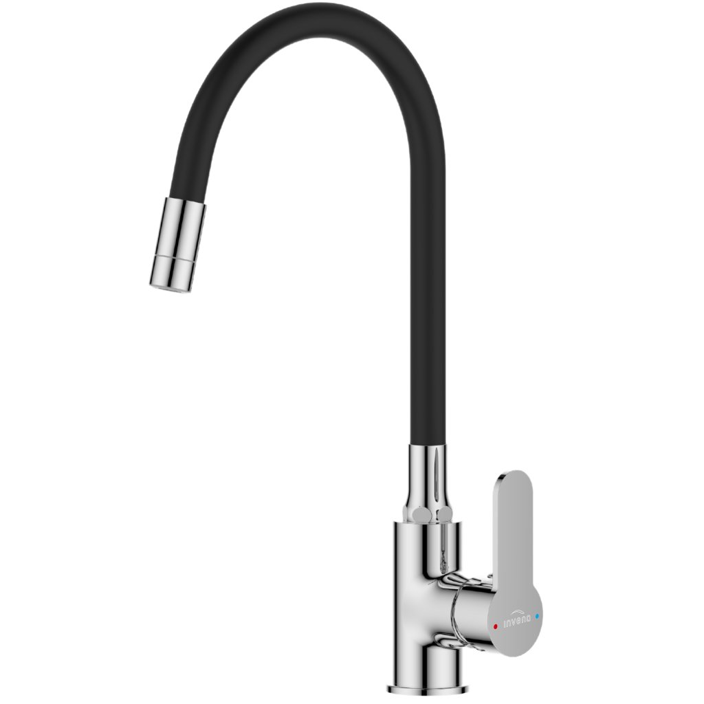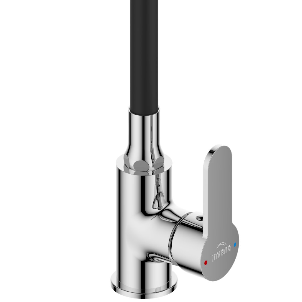 Invena Ksanti, dřezová baterie s flexibilním ramenem a 2-funkčním provzdušňovačem, chromová-černá matná, INV-BZ-37-008-L