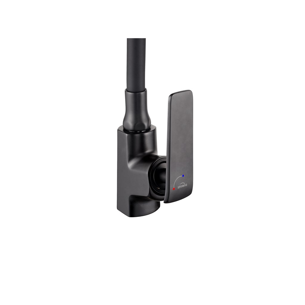 Invena Ligaria, vysoká dřezová baterie s elastickým ramenem, systém Eco Start, černá matná, INV-BZ-39-004-L