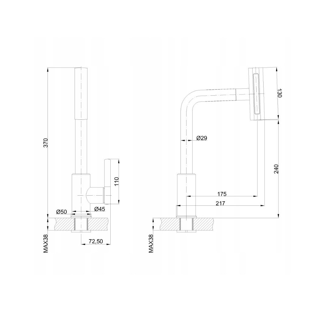 - Výtok: otočný, vytahovatelný, 4-funkční