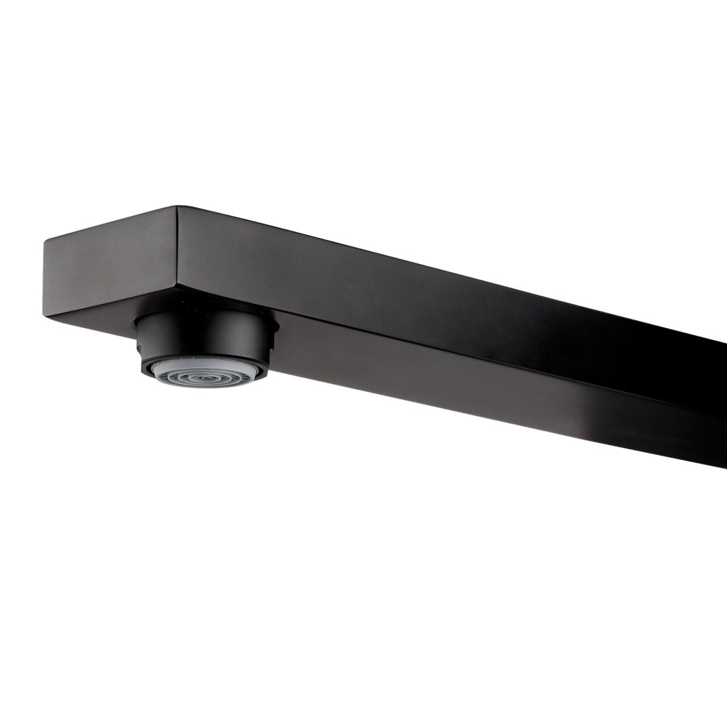 - Moderní, strohý tvar s obdélníkovou rozetou a hranatým výtokem