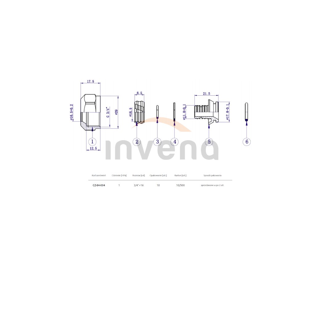 Invena Prov, sada připojení A3, šestihranná - 3/4"x16x2,0mm, INV-CZ-84-004-KPL