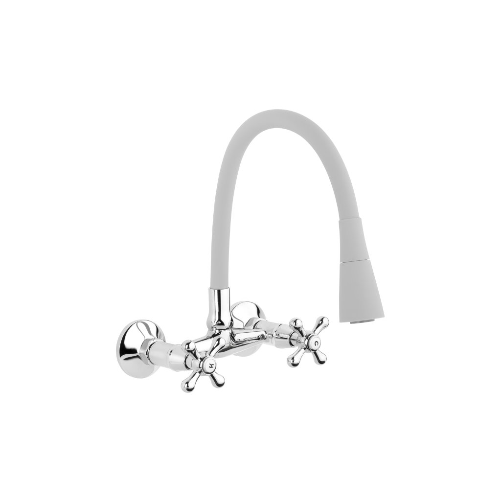 Nástěnná baterie Roma je návrh pro lidi, kteří hledají kombinaci funkčnosti s jedinečným designem. Baterie je vybavena elastickým výtokem, který umožňuje mytí nádobí v různých velikostech a zároveň omezuje stříkání vody do stran. Kombinace šedého výtoku s chromovanými rukojeťmi bude vyhovovat prakticky každé kuchyni.