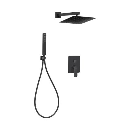 Invena Siros, podomítková sprchová sada s dešťovou hlavovou sprchovou 25x25 cm a ruční hlavicí, černá matná, INV-BS-90-011-A
