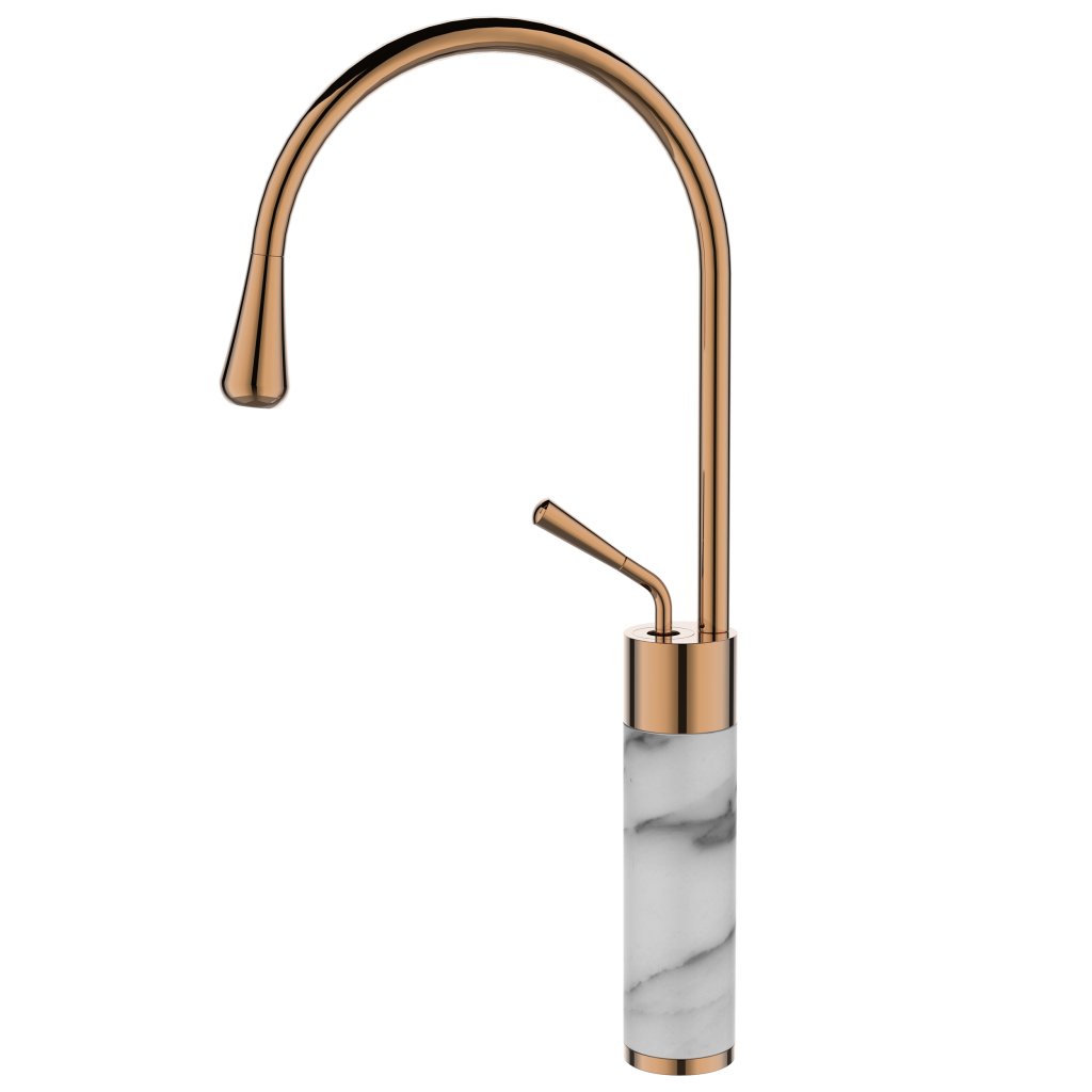 Invena Stone, vysoká umyvadlová baterie h-455, bílá-měděná, INV-BU-33-W18-V