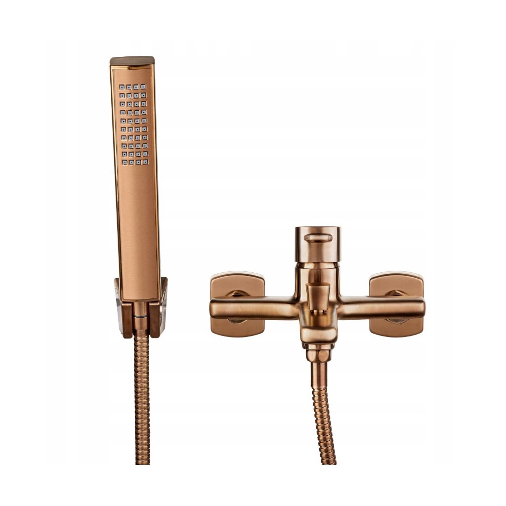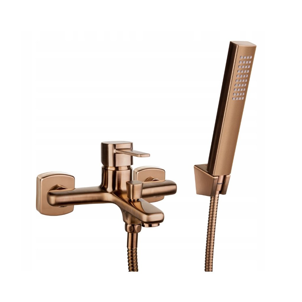 Invena Trend, vanová baterie s bodovou ruční sprchovou soupravou, měděná matná, INV-BW-02-014-V