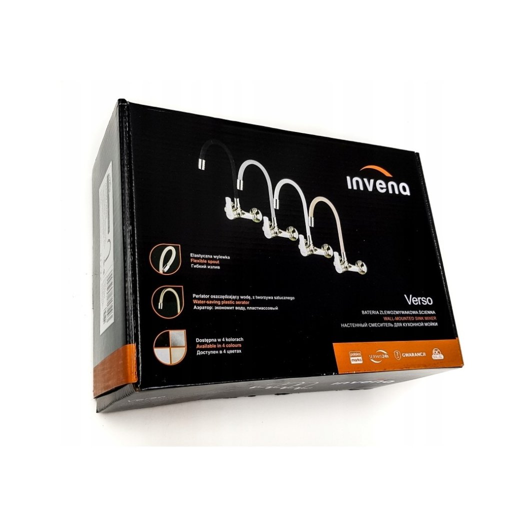 Invena Verso, nástěnná kuchyňská baterie 150mm s elastickým ramenem, béžová-černá-chromová, INV-BC-82-E4S-L