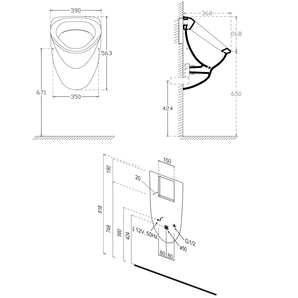 Isvea, DYNASTY urinál s automatickým splachovačem 6V DC, zakrytý přívod vody, 39x48 cm, 10SZ92001-SENSOR
