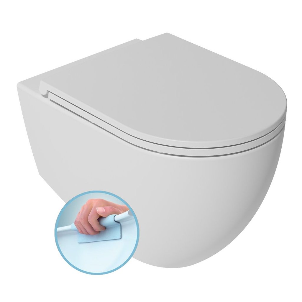 Rimless (NoRim) – toalety bez tradičního oplachového kruhu. Hladký povrch bez dutin a záhybů. Oplachová voda vytéká rozdělovačem vody pouze ze zadní části WC mísy a díky speciálnímu tvaru keramiky dokonale opláchne vnitřní prostor. Výhodou je snadná údržba a čištění WC mísy. Samozřejmostí je duální systém splachování s množstvím vody 3 nebo 4,5l.