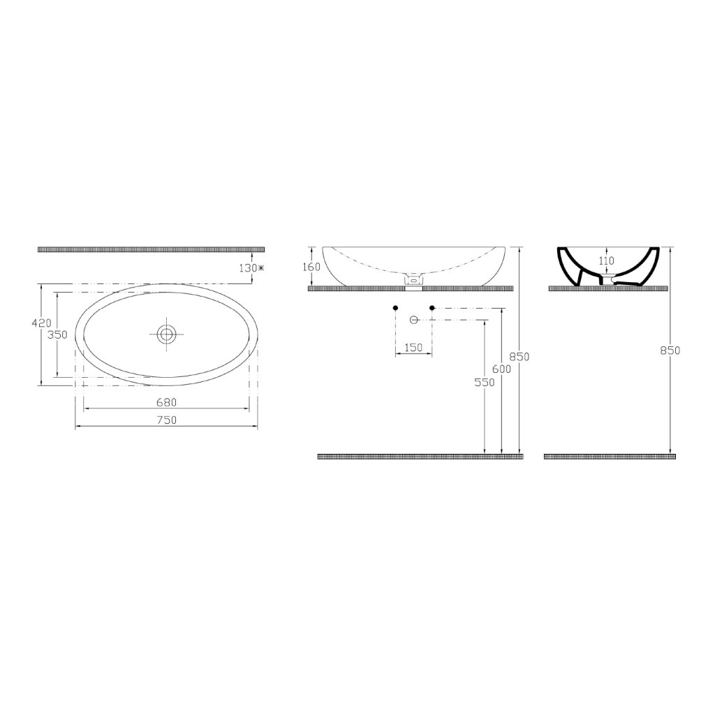 Isvea, SISTEMA keramické umyvadlo 75x42cm, oválné, 10AR65075