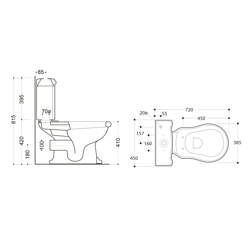 Kerasan, RETRO WC kombi mísa 38,5x41x72cm, zadní odpad, 101301
