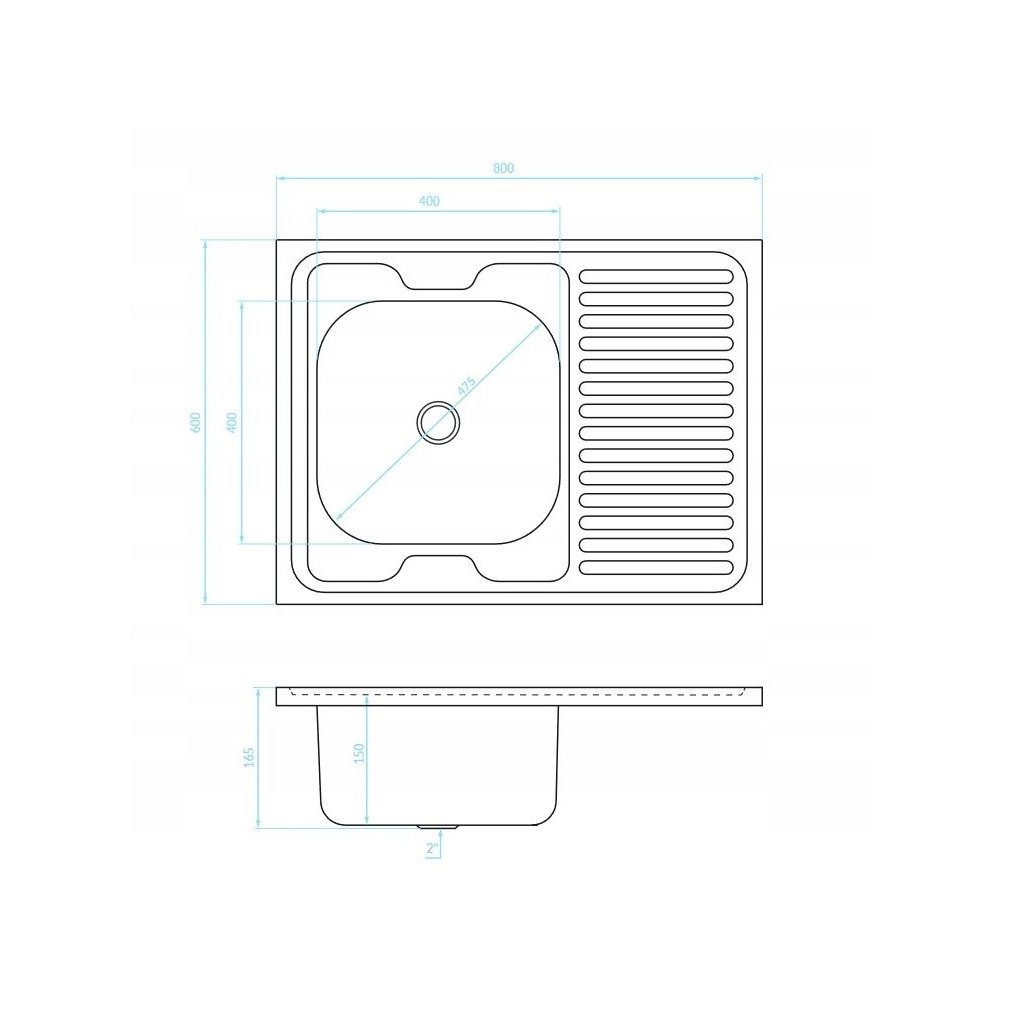 Kuchinox, 1-komorový nerezový dřez 800x600x165mm pro položení na skříňku, ocelová, LAV-SK6_311T