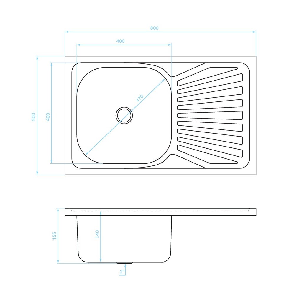 Jednokomorový dřez s odkapávačem série 50 je všestranný a mimořádně robustní produkt Kuchinox. Je navržen tak, aby byl doplněn jedním z nejoblíbenějších řešení – skříňkou o šířce 80 cm. Model je připevněn ke skříňce – takže lze nainstalovat rychle a pohodlně, bez potřeby připevňování prvku pomocí šroubů. Jednokomorový dřez s odkapávačem je komplexním řešením a zároveň vám umožňuje zachovat cenný prostor. Bude to dobře fungovat v kuchyni, kde není místo pro dvoukomorový model nebo když se druhá komora prostě zdá být zbytečná. Jeho rozměry – šířka 500 mm, délka 800 mm a hloubka 140 mm – umožňují pohodlné mytí nádobí bez nadměrného stříkání vody.