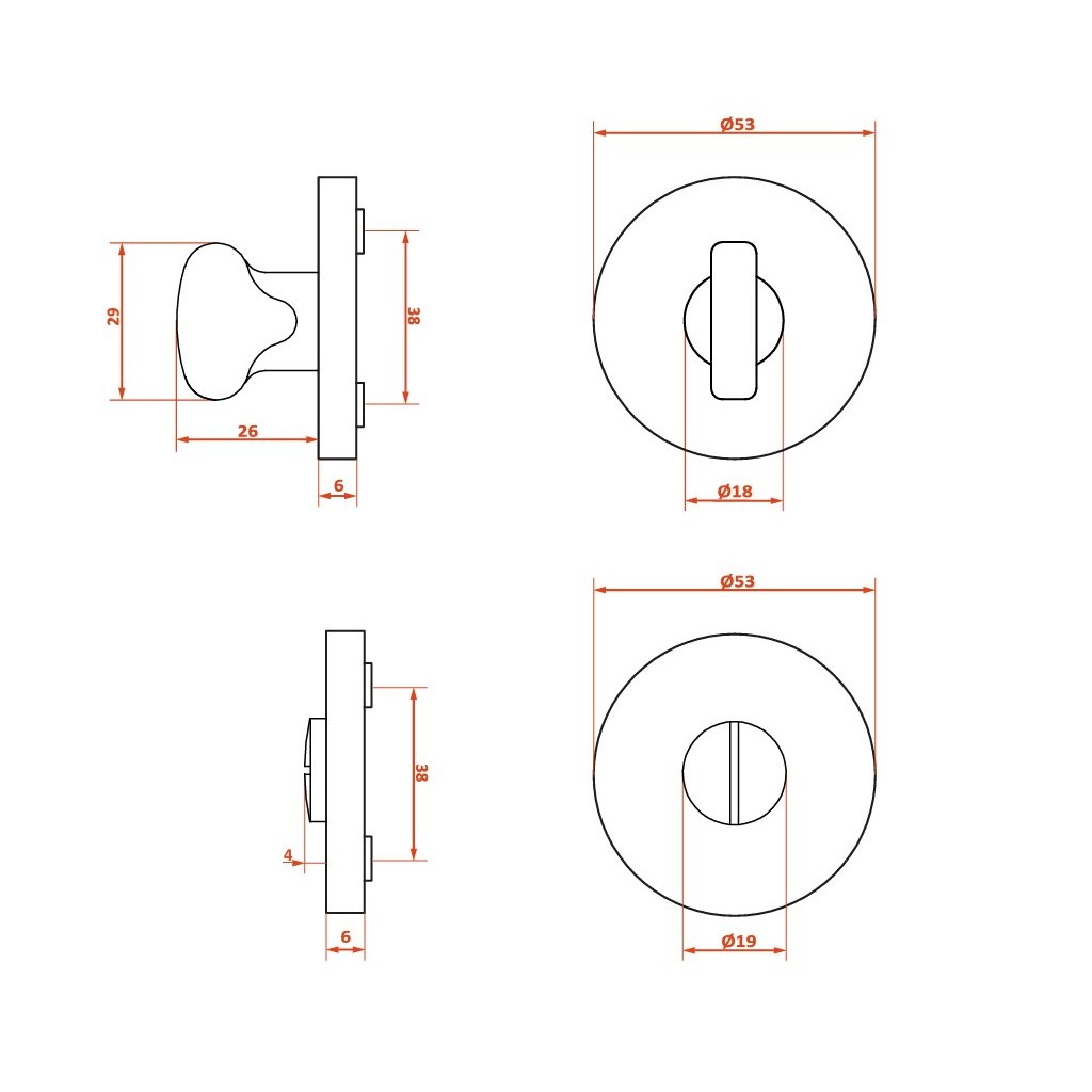 - Typ rozety: upevňuje se imbusovým šroubem