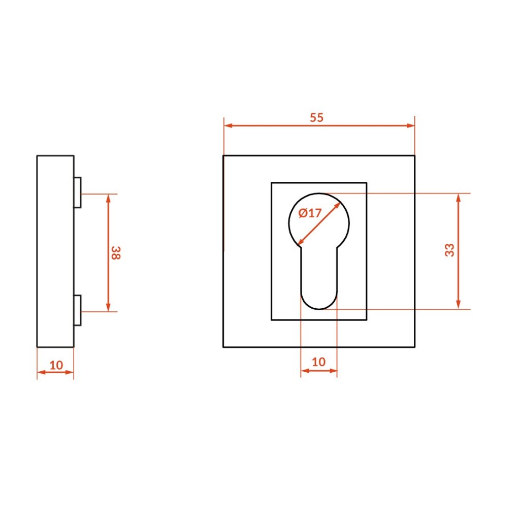 - Materiál: Hliník - maskovací rozeta, zamak - montáž, vnitřní část rozety