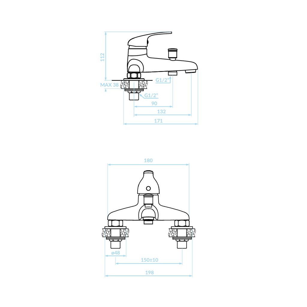 Stojící vanový kohoutek je instalován ve speciálních otvorech umístěných na okraji vany. K instalaci se připojuje pomocí ohebných hadic. Instalace je jednoduchá a výsledek je velmi působivý. Produkt Kuchinox se odlišuje od ostatních svojí odolností a všestranností. Baterie je vybavena keramickou hlavicí o průměru 35 mm, která zajišťuje plynulý průtok vody, a jednopákovým ovládacím systémem. Pevný vtok o dosahu 13 cm zaručuje přesný proud vody a chromová povrchová úprava dodává elegantní lesk, který oživí design interiéru. Díky svým malým rozměrům a možnosti montáže poblíž stěny je model ideální pro malé koupelny.