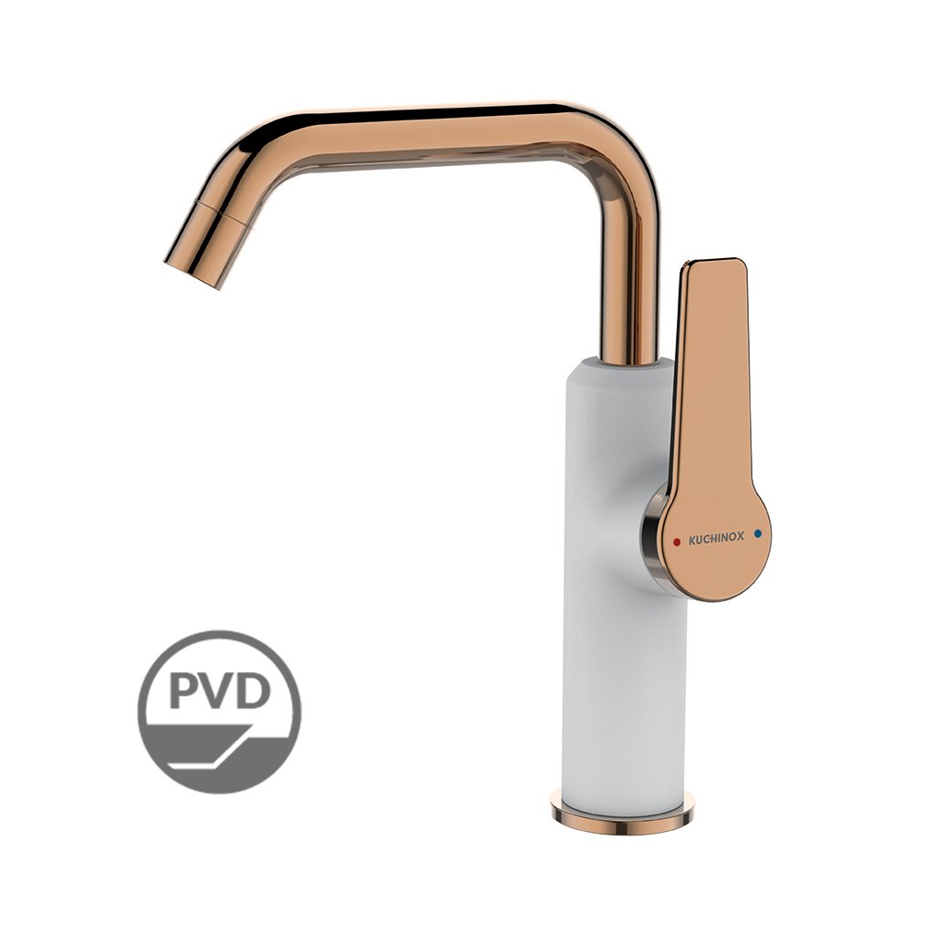 Kuchinox Alanis, umyvadlová baterie s výtokem ve tvaru L, h-235, bílá-růžové zlato, LAV-BQI_625D