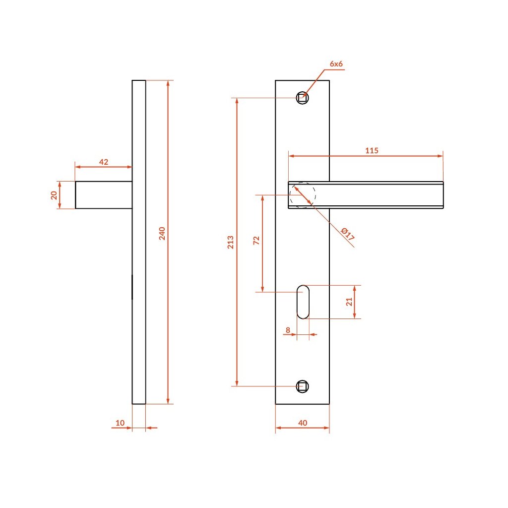 Při objednávání klik na dlouhém kování je třeba vědět vzdálenost mezi osou kliky a osou klíče (rozteč). Standardní vzdálenost je 72 nebo 90 mm. Zároveň jsou dostupné 3 hlavní otvory pro klíč (interiérový klíč, otvor pro cylindrickou vložku, WC klíč)