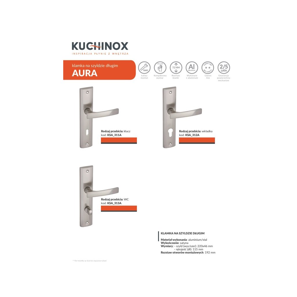 Kuchinox Aura, klika na dveře na dlouhém kování pro interiérový klíč, satén, LAV-KSA_311A