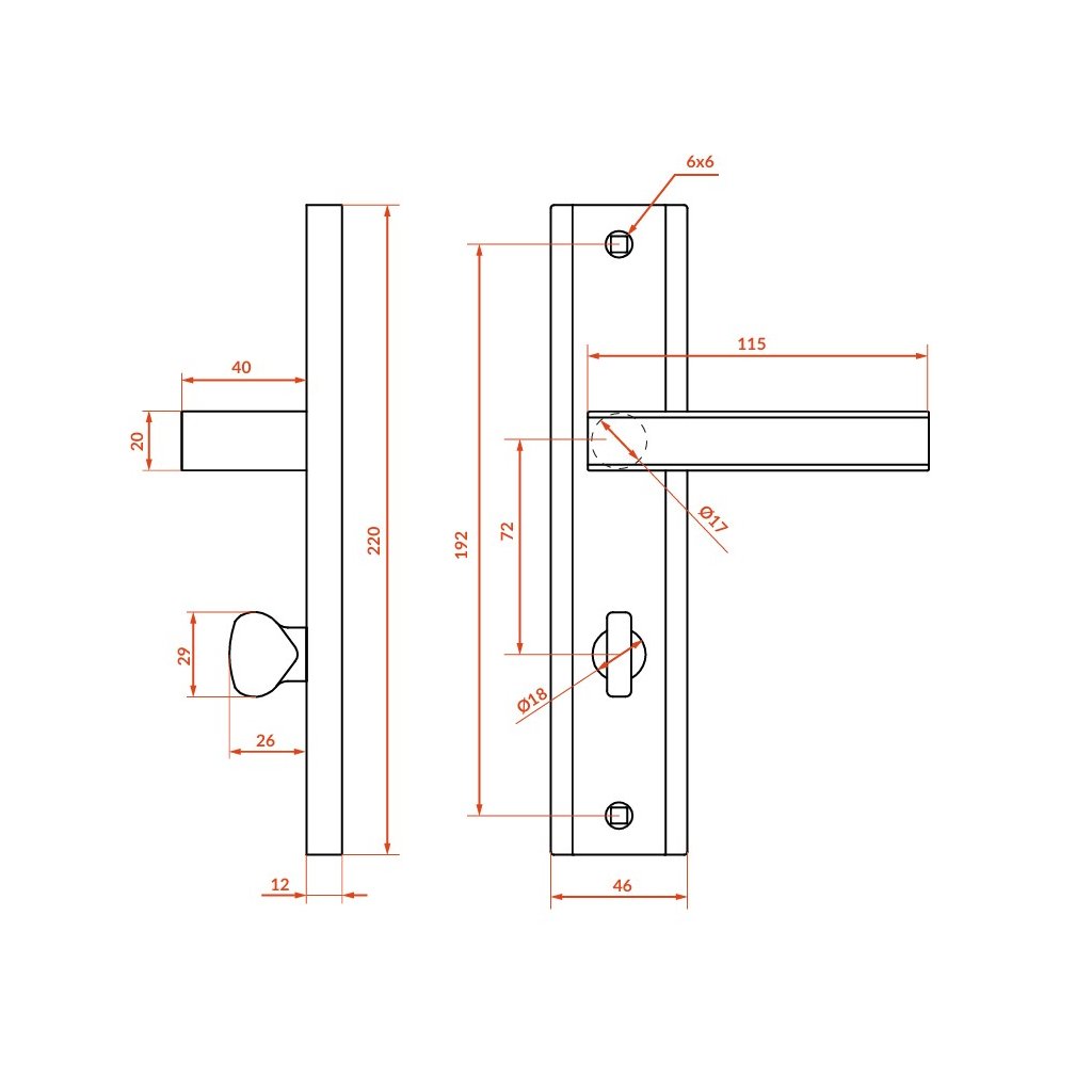 Kuchinox Aura, klika na dveře na dlouhém kování pro WC zámek, satén, LAV-KSA_313A