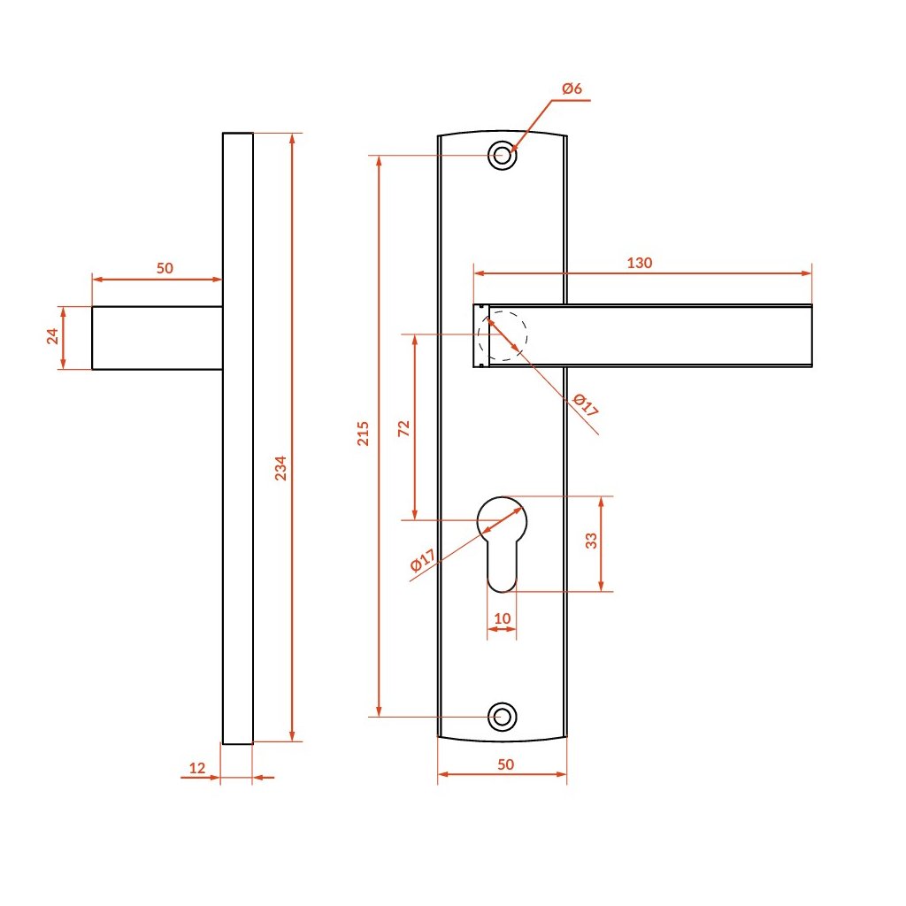 Při objednávání klik na dlouhém kování je třeba vědět vzdálenost mezi osou kliky a osou klíče (rozteč). Standardní vzdálenost je 72 nebo 90 mm. Zároveň jsou dostupné 3 hlavní otvory pro klíč (interiérový klíč, otvor pro cylindrickou vložku, WC klíč)