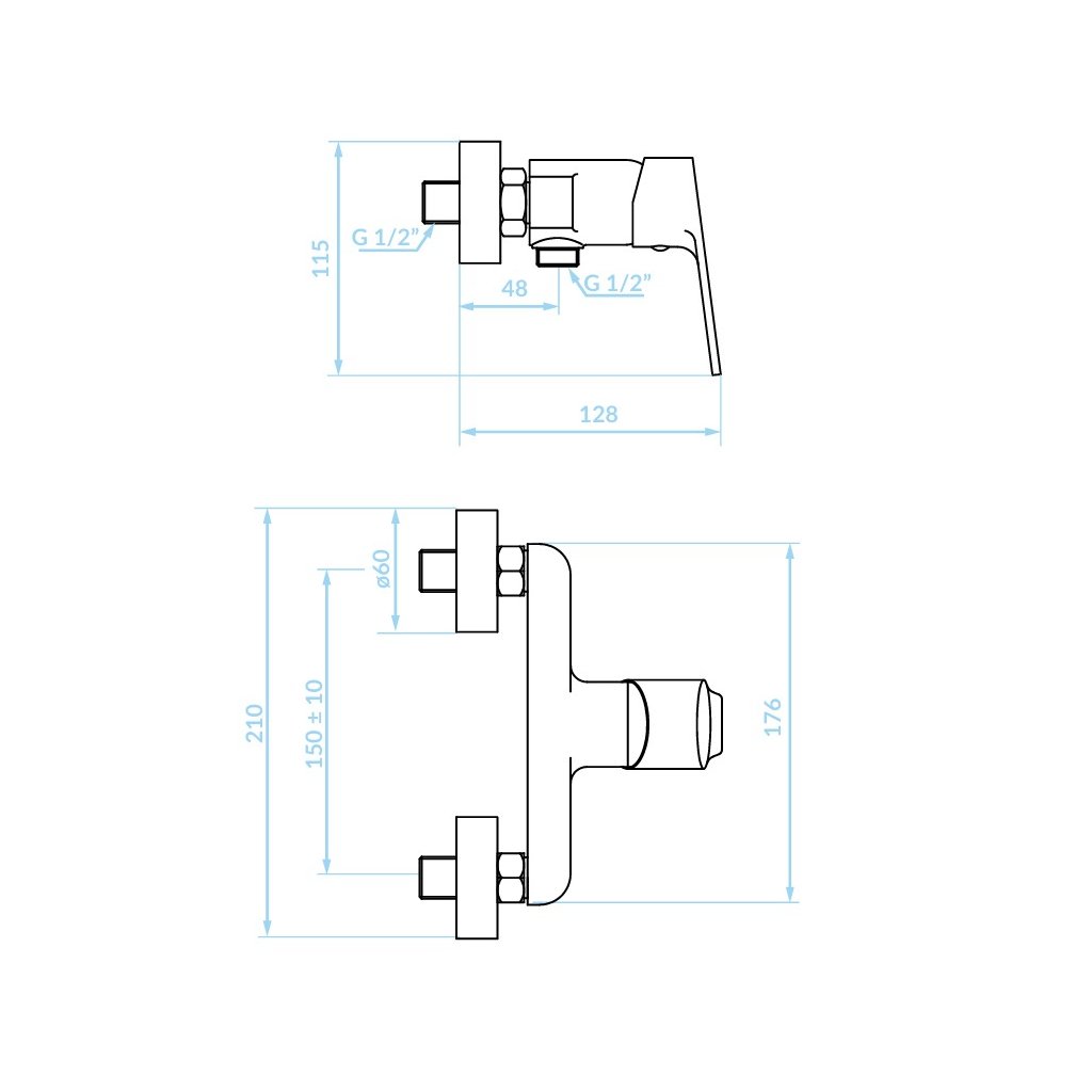 Kuchinox Borgo, nástěnná sprchová baterie 150mm, chromová, LAV-BKB_040D