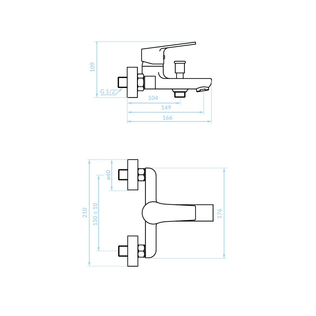 Nástěnná vanová baterie BORGO bez sprchové soupravy je kvalitní baterie, ke které si každý může individuálně vyjmout hadici se sprchovou hlavicí – podle svých preferencí. Tato kompaktní baterie se vyznačuje následujícími rozměry: výška – 109 mm, dosah výtoku – 149 mm. Výše uvedené parametry dělají z produktu univerzální řešení, které je ideální pro malé, střední i velké koupelny s vanou.