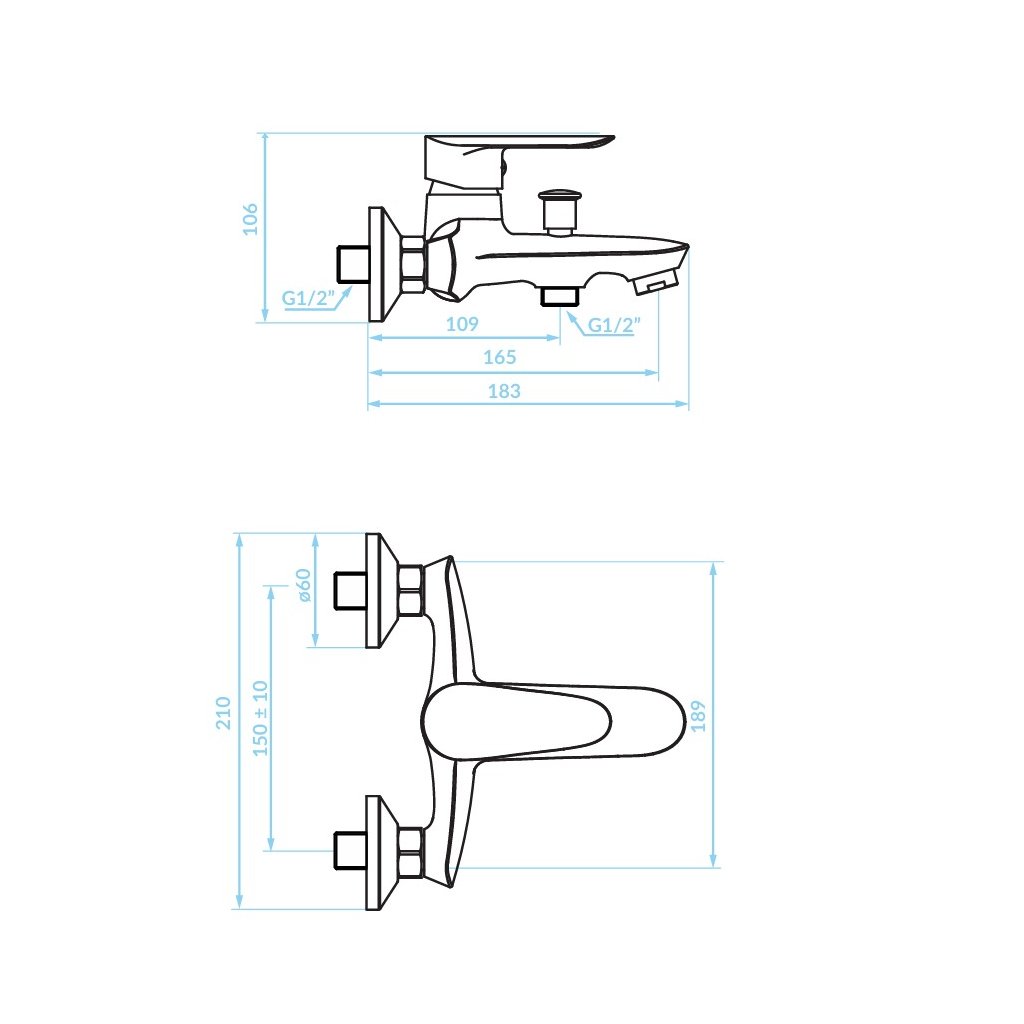 Kuchinox Cento, nástěnná vanová baterie 150mm, chromová, LAV-BKC_010D