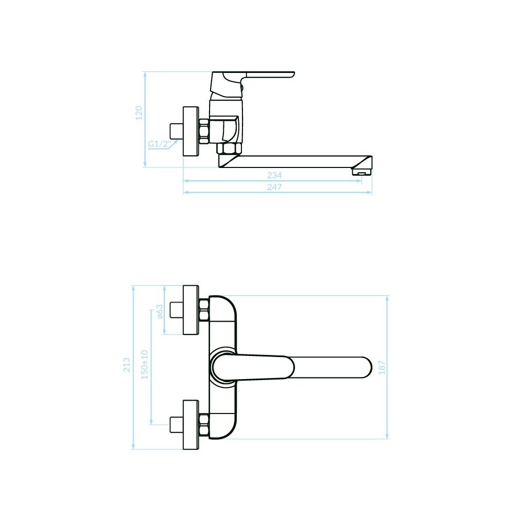 Kuchinox Dima, nástěnná dřezová/umyvadlová baterie, chromová, LAV-BQD_050D