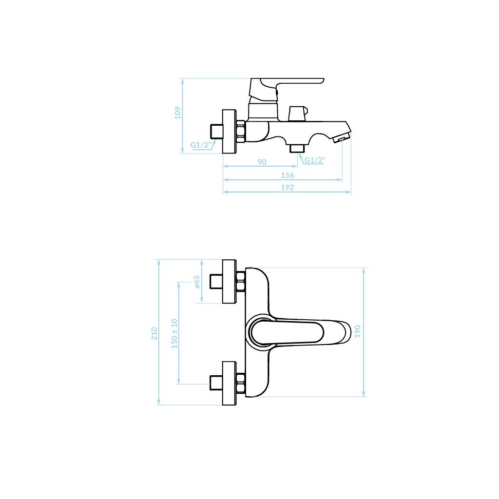 Kuchinox Dima, nástěnná vanová baterie s keramickým přepínačem sprchy, černá matná, LAV-BQD_710D