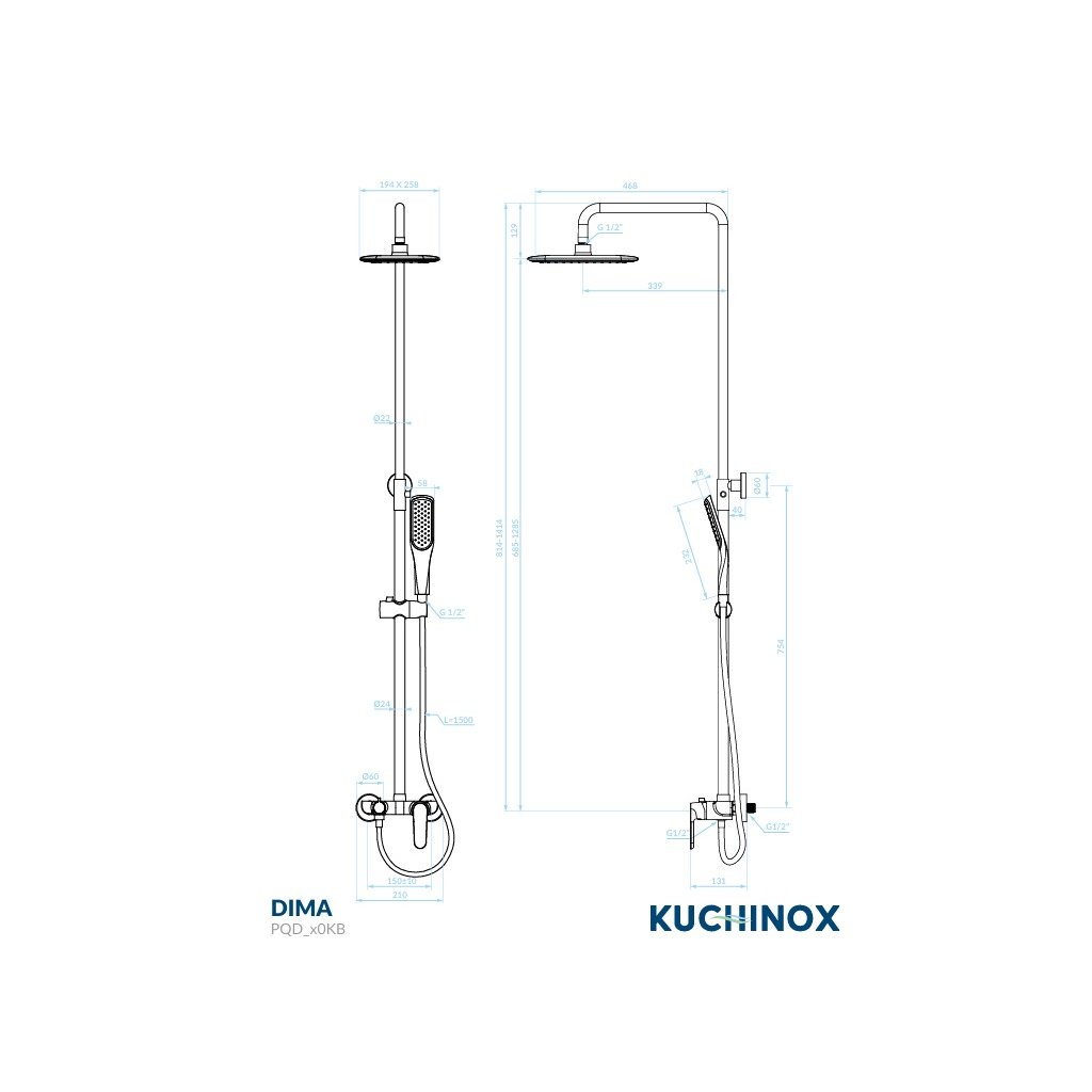 Kuchinox Dima, sprchová sada s dešťovou a ruční sprchovou hlavicí, černá matná, LAV-PQD_70KB