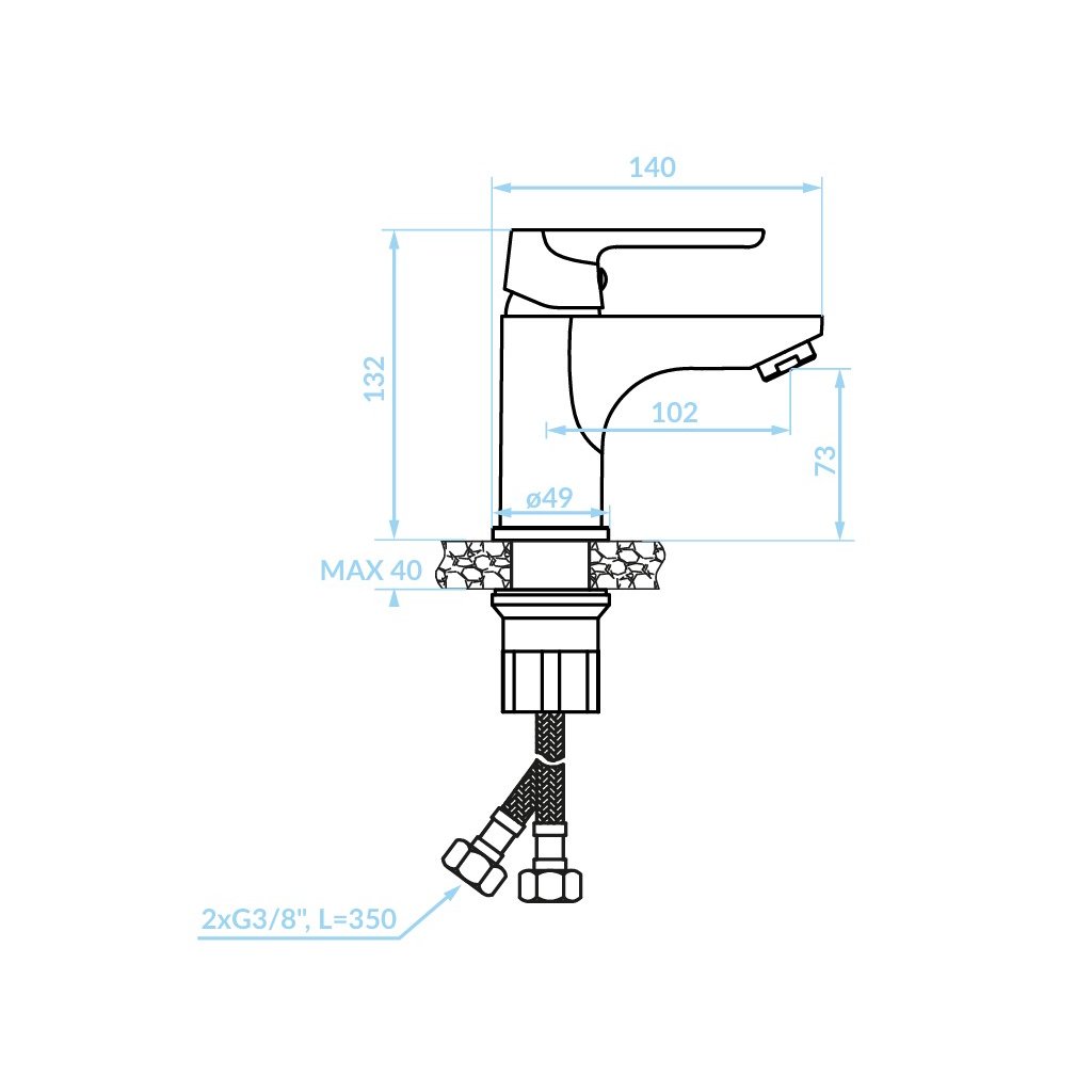 Kuchinox Dima, umyvadlová baterie včetně odtokové zátky ClickClack h-132, chromová, LAV-BQD_022D