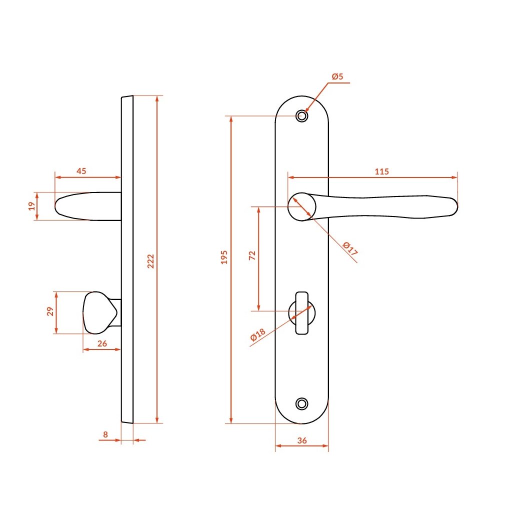 Kuchinox Ewa, klika na dveře na dlouhém kování pro WC zámek, satén, LAV-KEW_313A