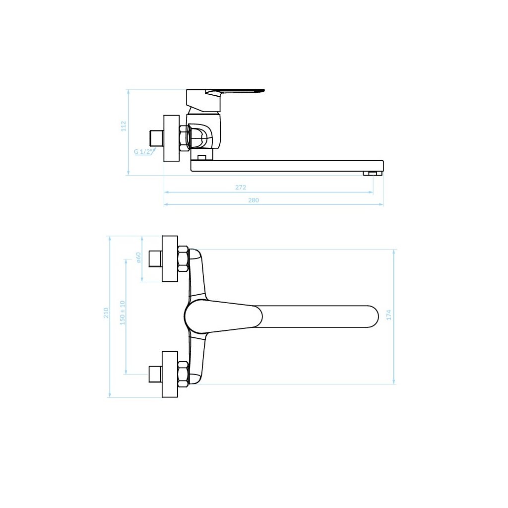 Kuchinox Fresno, nástěnná dřezová baterie L-272, 150 mm, chromová, LAV-BQF_080D