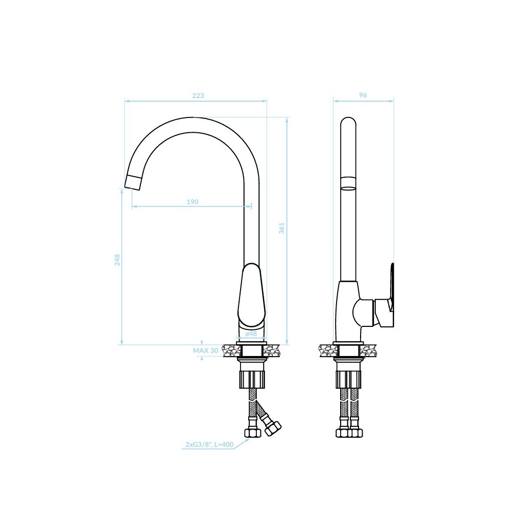 - Typ: dřezová baterie s ramenem ve tvaru-U