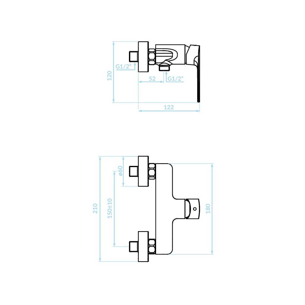 Kuchinox Gava, nástěnná sprchová baterie, rozteč 150mm, zlatá lesklá, LAV-BQG_G40D