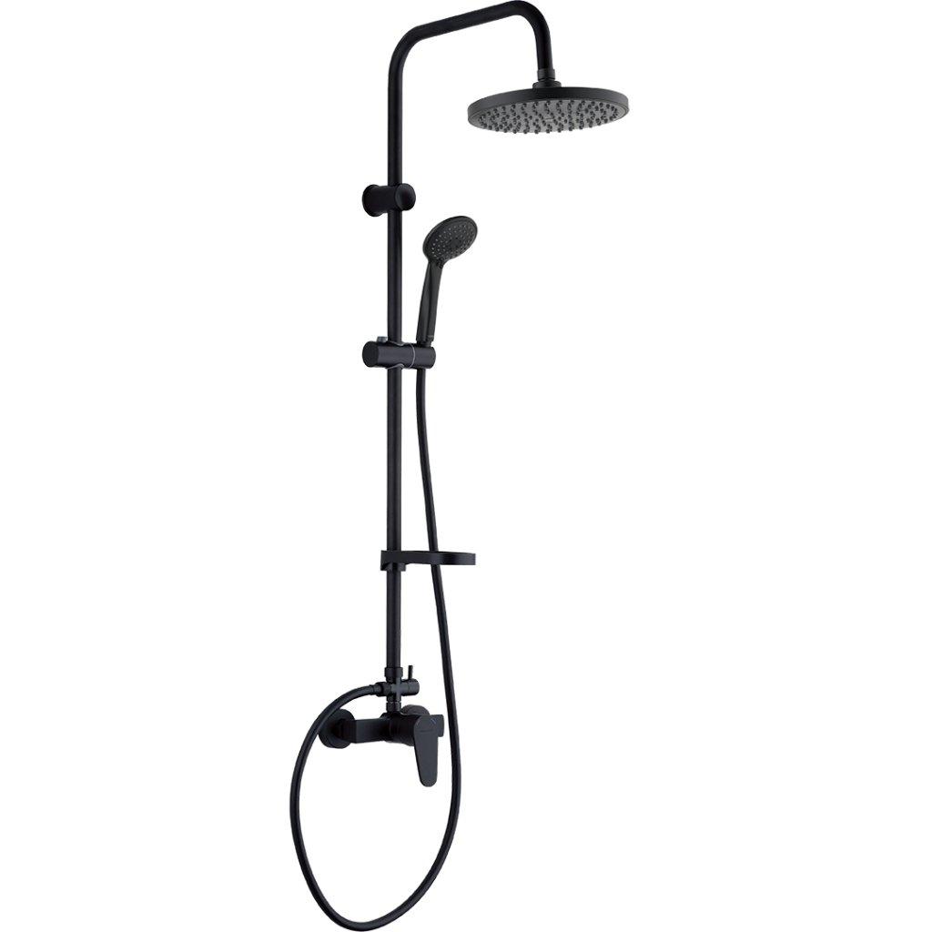 Kuchinox Intra, nástěnná sprchová souprava s pákovou baterií, ruční a hlavovou sprchou, černá matná, LAV-PKI_70OB