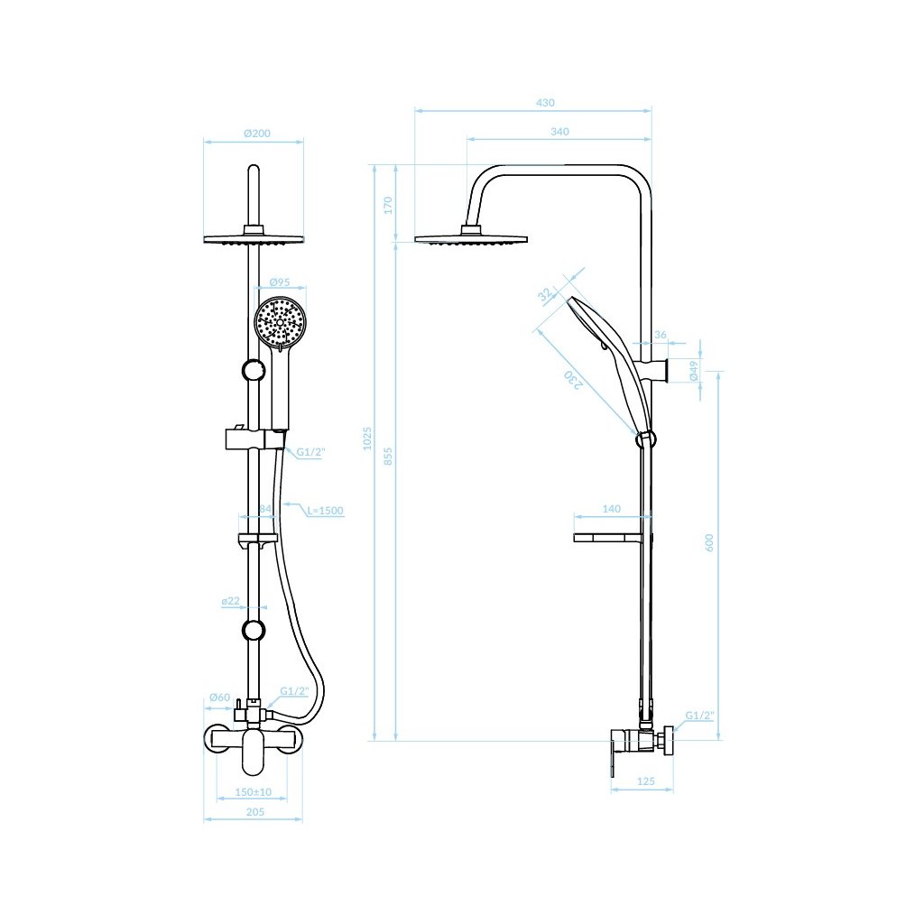 - Typ: sprchový sloup s ruční a hlavovou sprchou