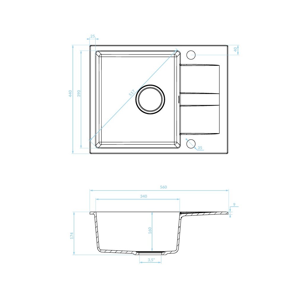 - Model: obdélníkový jednokomorový kuchyňský dřez