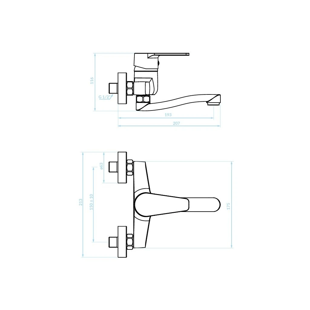 Při instalaci nástěnné baterie doporučujeme dbát na přesné vyměření výšky nad umyvadlem, abyste předešli nadměrnému stříkání vody. Díky otočnému ramenu o délce 193 mm je tento model mimořádně vhodný i pro větší umyvadla, neboť umožňuje pohodlný přístup k vodě v celém jejich prostoru.