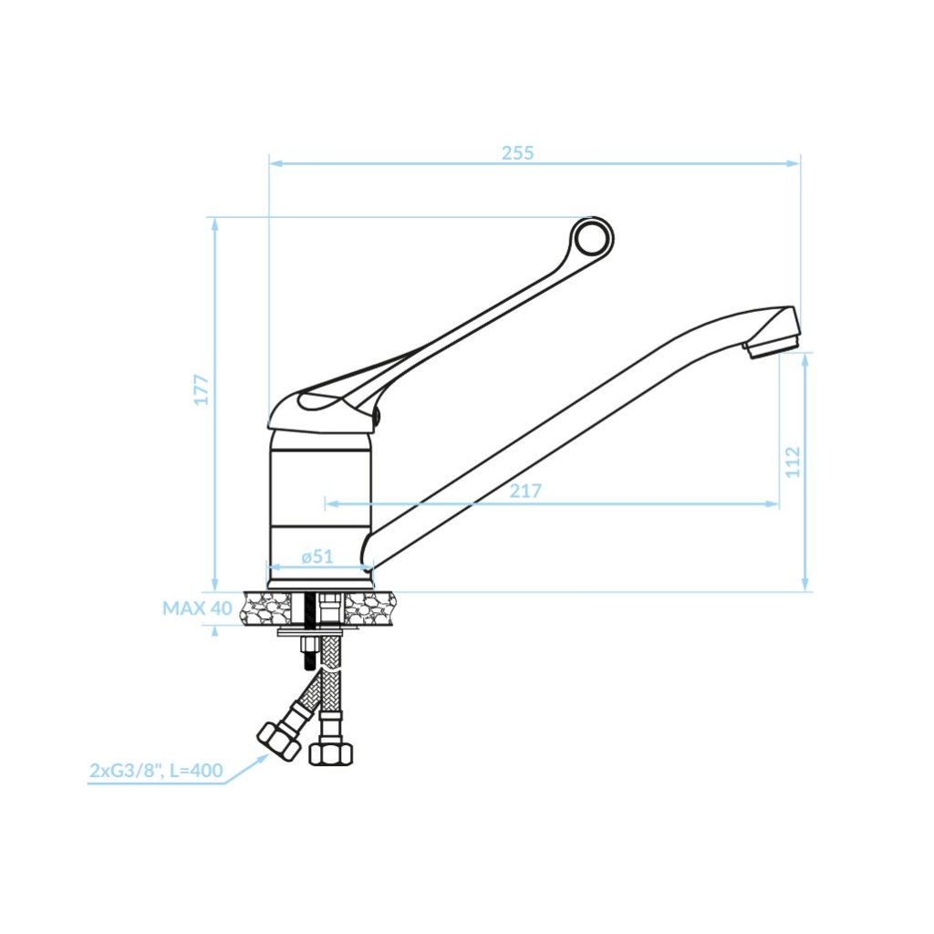 Kuchinox Madera, dřezová baterie s lékařskou pákou, chromová, LAV-BQM_06MD