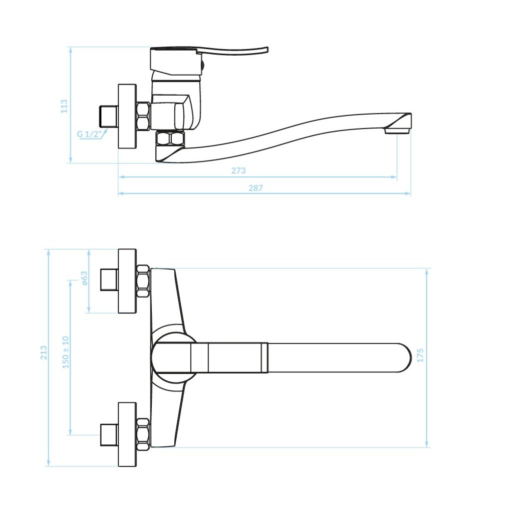 Kuchinox Madera, nástěnná dřezová baterie 150mm, chromová, LAV-BQM_080D