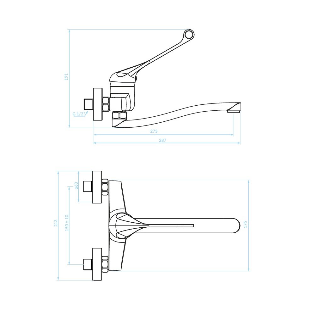 Kuchinox Madera, nástěnná dřezová baterie 150mm s lékařskou pákou, chromová, LAV-BQM_08MD