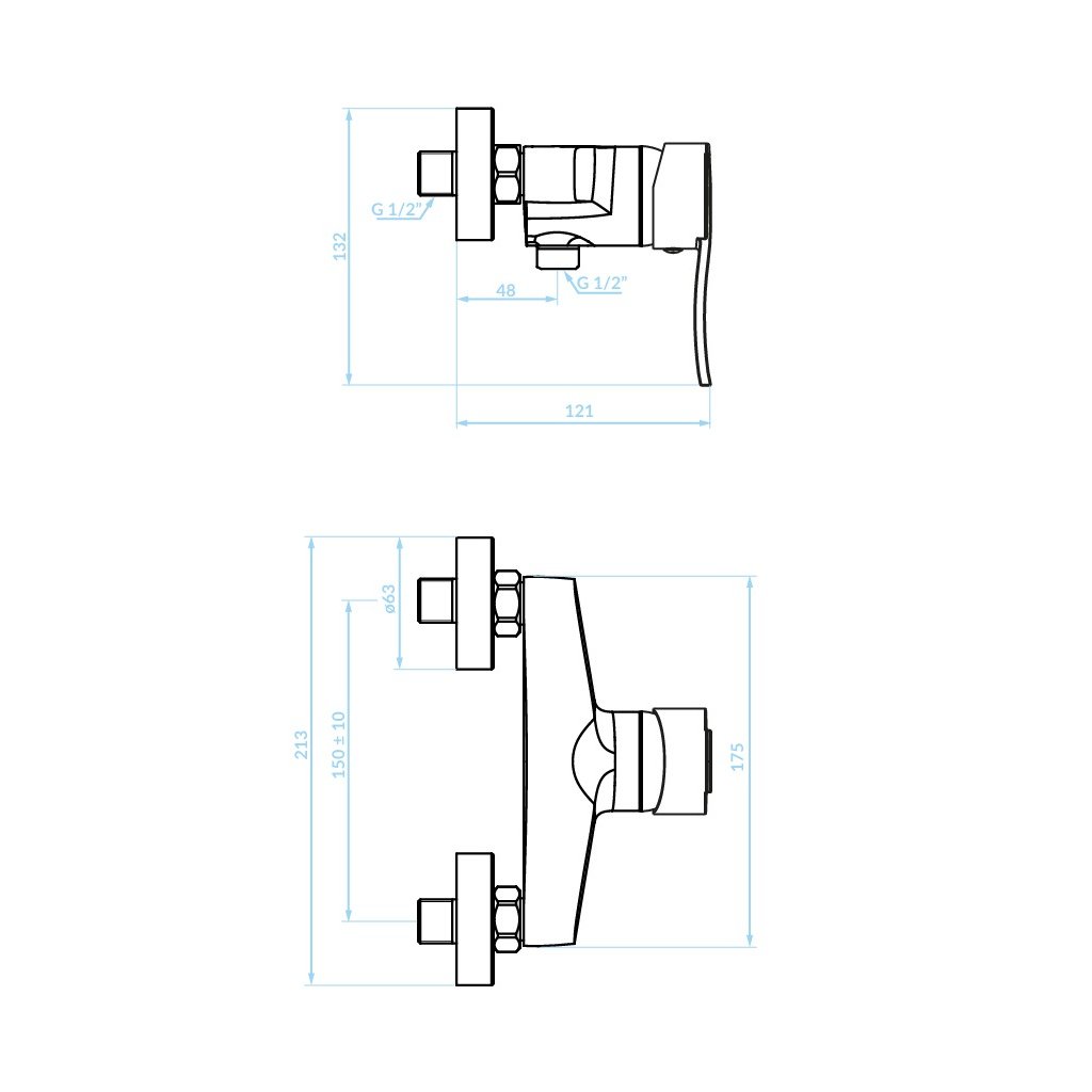 Kuchinox Madera, nástěnná sprchová baterie, černá matná, LAV-BQM_740D