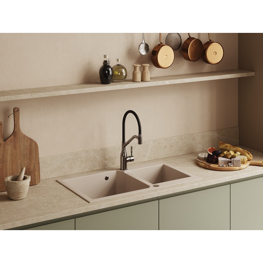 Kuchinox Milos, 2-komorový granitový dřez 860x500x215 mm + sifon, béžová, LAV-SPM_4208