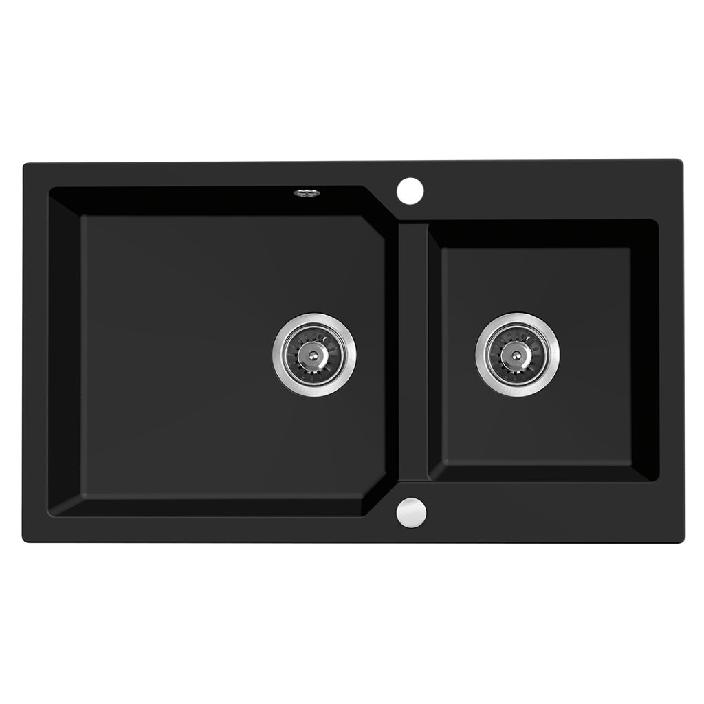 Kuchinox Milos, 2-komorový granitový dřez 860x500x215 mm + sifon, černá matná, LAV-SPM_B208