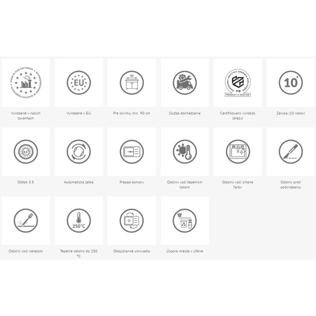 - Vyvrtané otvory z továrny: Ano, 2 (1 pro dřezovou baterii, 1 pro ovládání odtokové zátky sifonu)