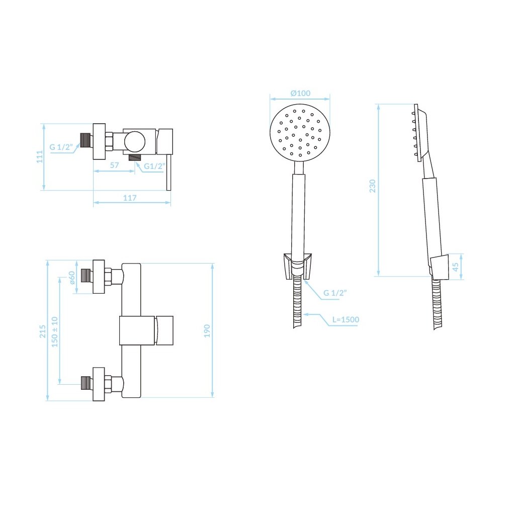- Ruční sprchová hlavice: 1-funkce (déšť)