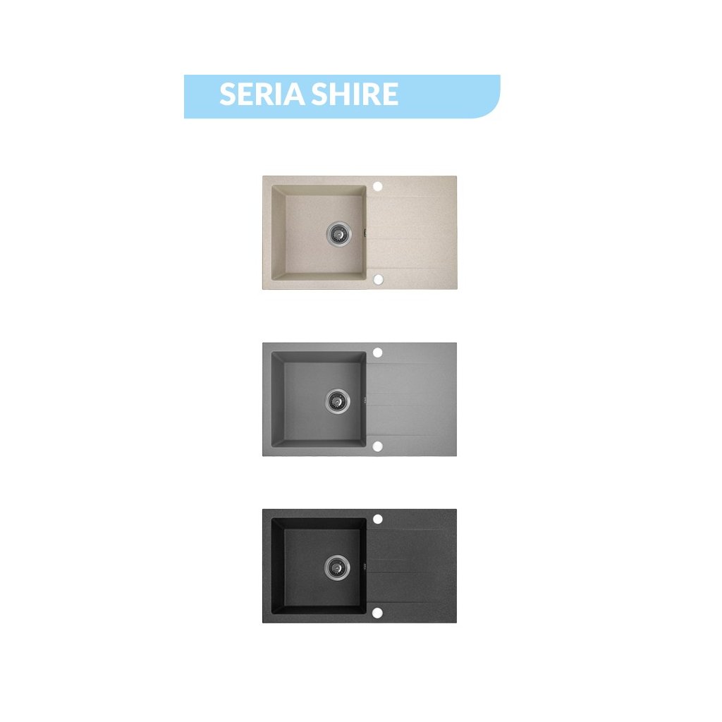 - Vývod do myčky nádobí – dřez SHIRE je vybaven vývodem do myčky nádobí, který umožňuje snadné připojení spotřebiče, čímž se zvýší funkčnost kuchyně.