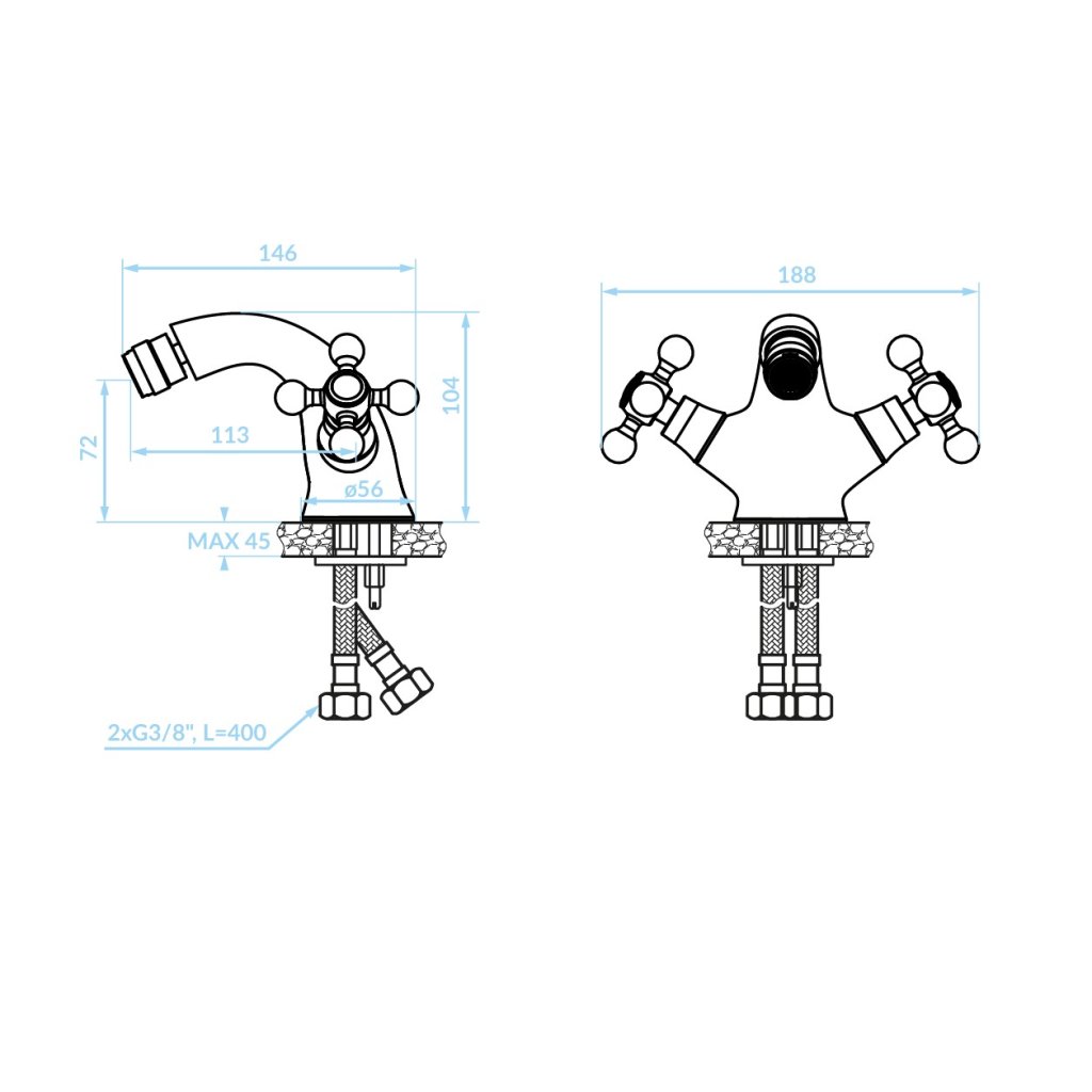 Kuchinox Stilo, stojánková bidetová baterie s odtokovou zátkou, mosazná, LAV-BKI_532D