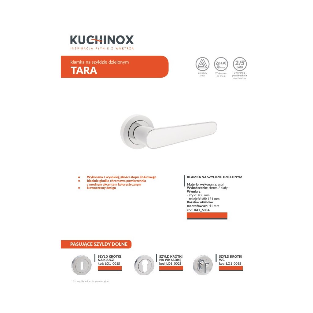 Kuchinox Tara, klika na dveře, chromová-bílá, LAV-KAT_600A